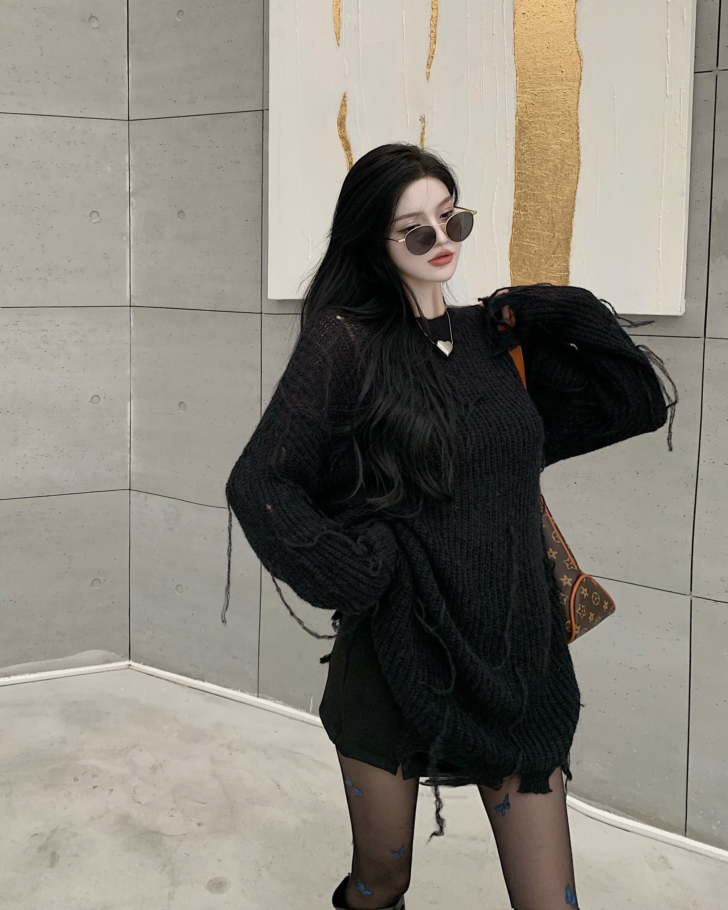 (2色選択可) ワンピース ニットワンピース ニットセーター ダメージニット ダメージ加工 ミニワンピース ミニ丈 チュニック ラウンドネック 長袖 無地 ゆったり レディース 可愛い きれいめ シンプル カジュアル 大人 かわいい おしゃれ お洒落 上品 フェミニン 大人可愛い 大人女子 春 秋 冬 10代 20代 30代 デート お出かけ 女子会 デイリー 普段着 ブラック 黒色 グレー 灰色 | Chère
