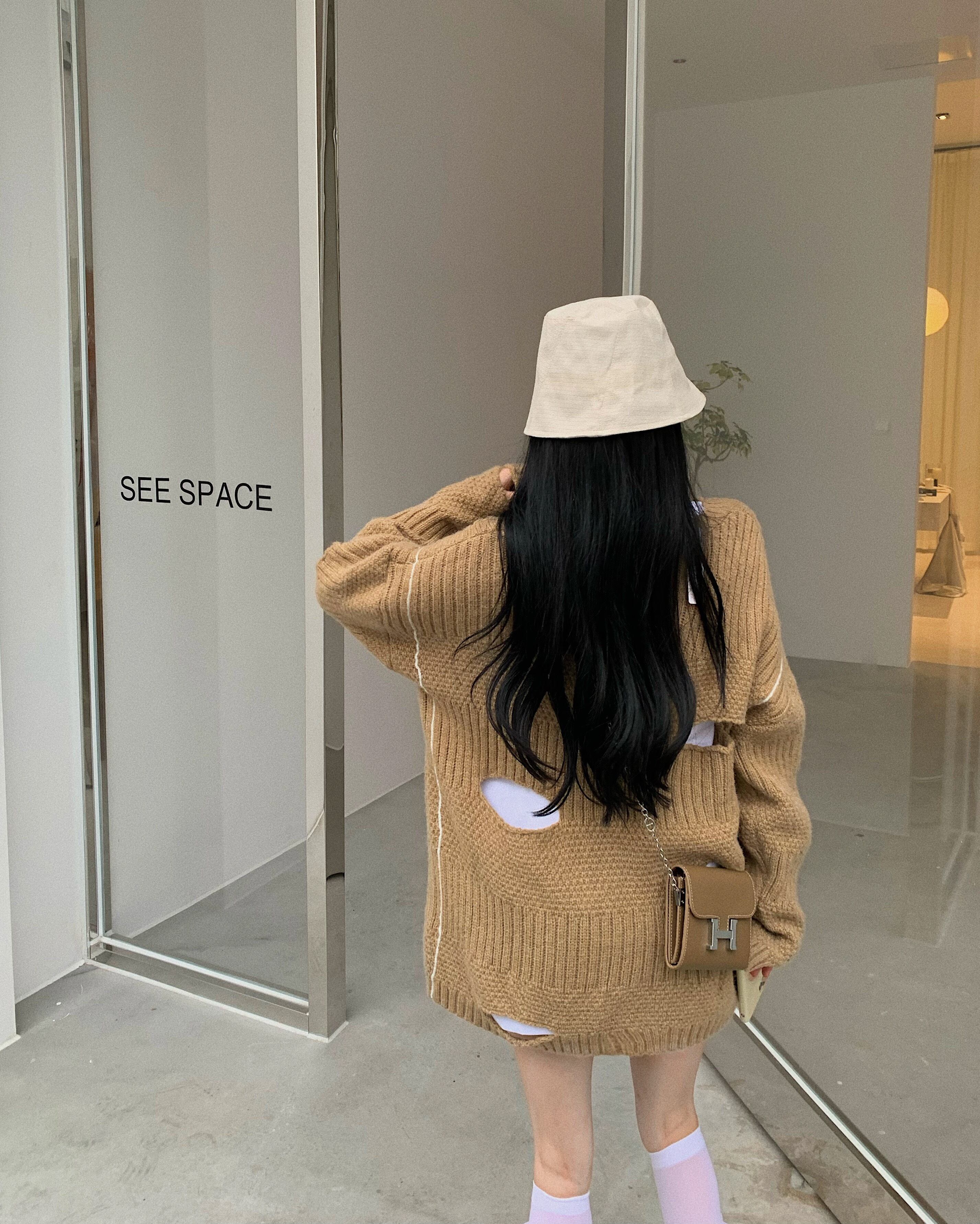 ざっくりローゲージの穴あきデザインが大人可愛いニットセーター。