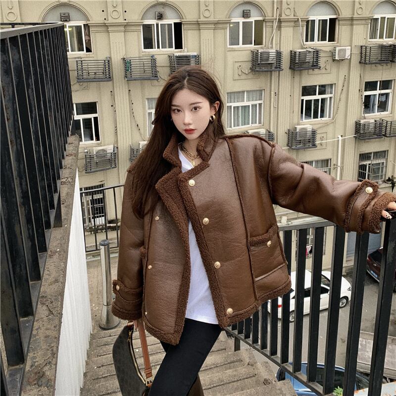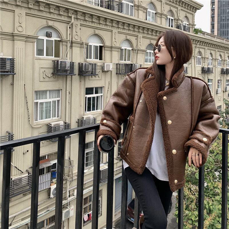 (2色選択可) アウター ジャケット 厚手 長袖 スクエアカラー ボタン ポケット シンプル カジュアル レトロ おしゃれ 大人可愛い クール こなれ感 10代 20代 30代 40代 普段使い 休日 お出かけ 女子会 デート 旅行 韓国系 ファッション スタイル フリーサイズ ブラック 黒 ブラウン 茶色 | Chère