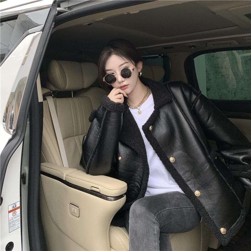 表面はPUレザー、内側はボアのクールな印象の厚手ジャケット。