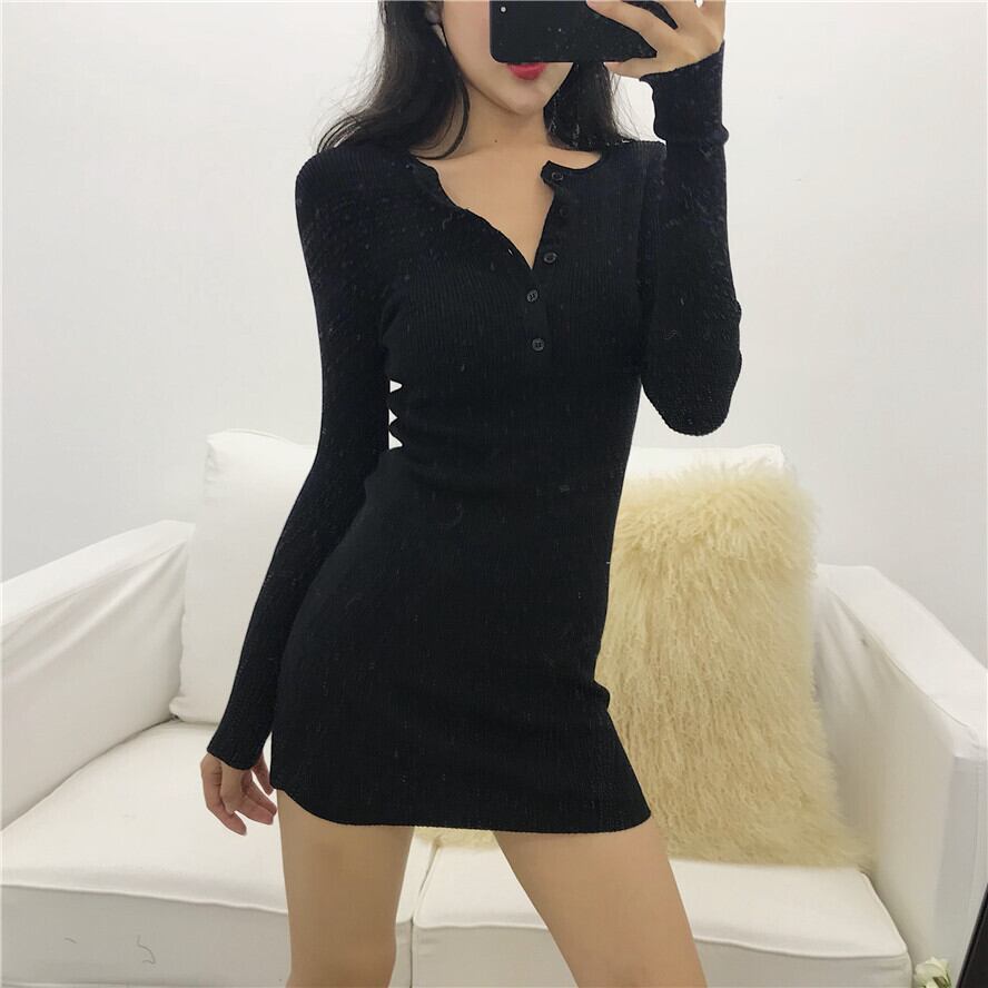 (2色選択可) ワンピース ショート丈 ミニ丈 長袖 タイト スリム ボタン リブ 細身 タイトワンピース ミニワンピース カジュアル シンプル きれいめ 大人可愛い かわいい セクシー おしゃれ 大人女子 お洒落10代 20代 30代 40代 休日 お出かけ デート 女子会 普段使い デイリー 普段着 着回し モテ コーデ 脚長 美脚 スタイル 韓国系 ファッション フリーサイズ 無地 ブラック 黒 グリーン 緑 | Chère