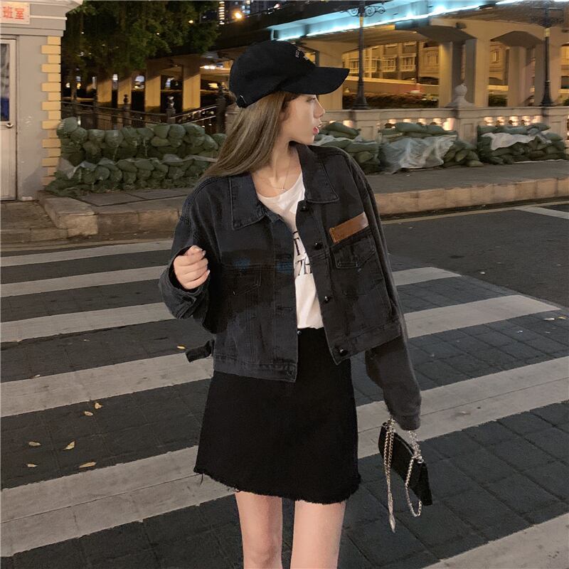 (色とサイズが選択可) アウター ジャケット デニム ショート丈 ボタン 長袖 カジュアル ルーズ ストリート系 かわいい おしゃれ こなれ感 大人可愛い 10代 20代 30代 40代 休日 お出かけ デート 女子会 定番 着回し 普段使い 普段着 韓国系 ファッション コーデ ダークグレー 灰色 ブルー 青 | Chère