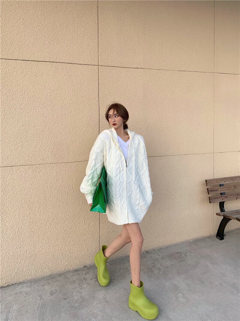 ざっくりローゲージにケーブル編みの大人可愛いニットパーカー。