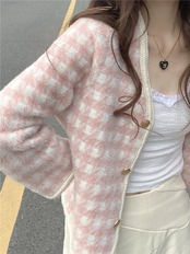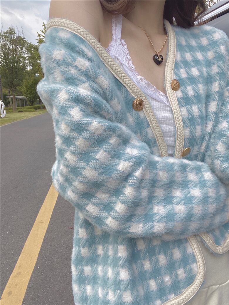 (2色選択可) カーディガン ニットカーディガン モヘアニット シャギーニット ふわふわ チェック柄 ショート丈 羽織り Vネック 長袖 無地 ゆったり レディース 可愛い きれいめ シンプル カジュアル 大人 かわいい おしゃれ お洒落 上品 フェミニン 大人可愛い 大人女子 春 秋 冬 10代 20代 30代 40代 デート お出かけ 女子会 通勤 OL オフィス デイリー 普段着 ピンク ブルー 青色 | Chère