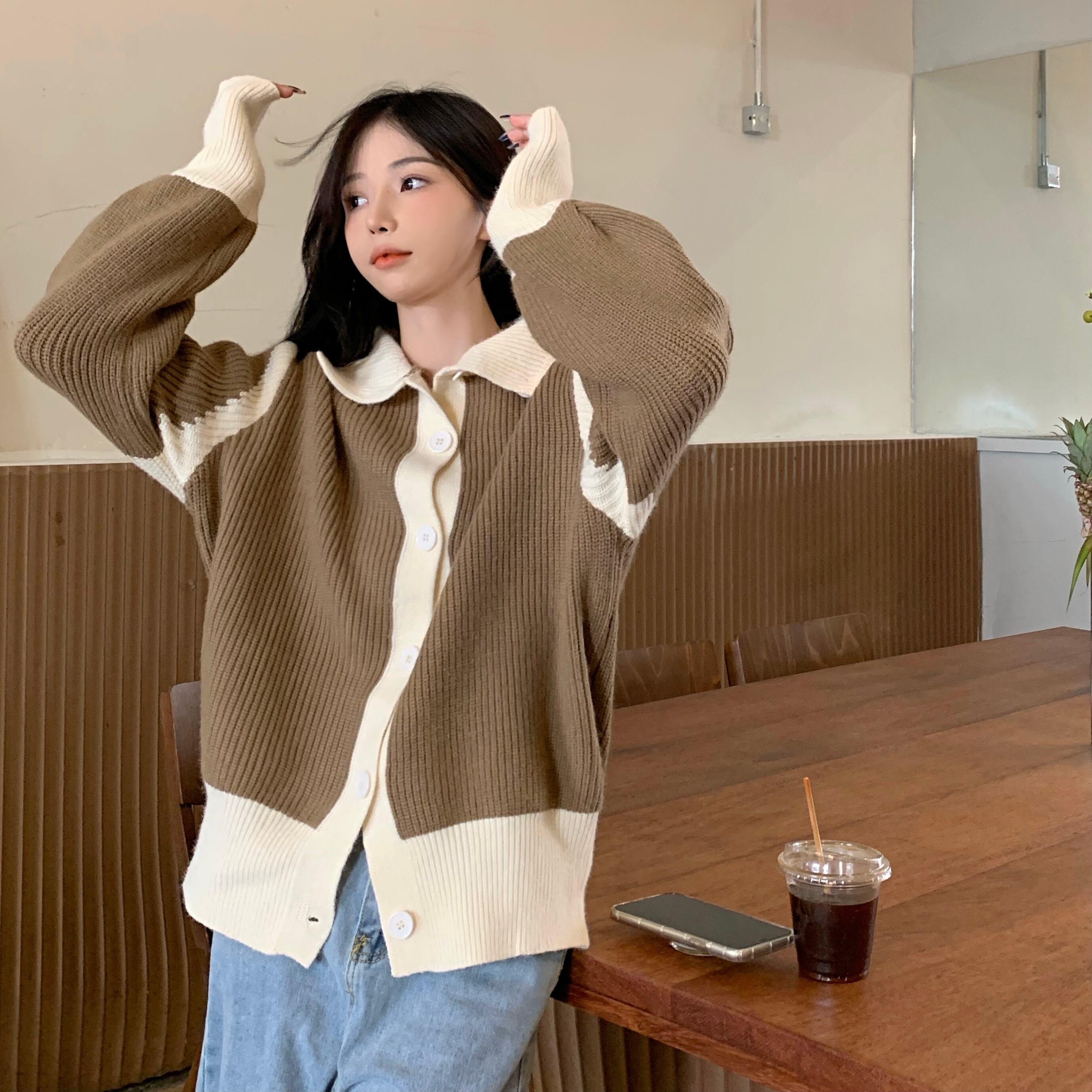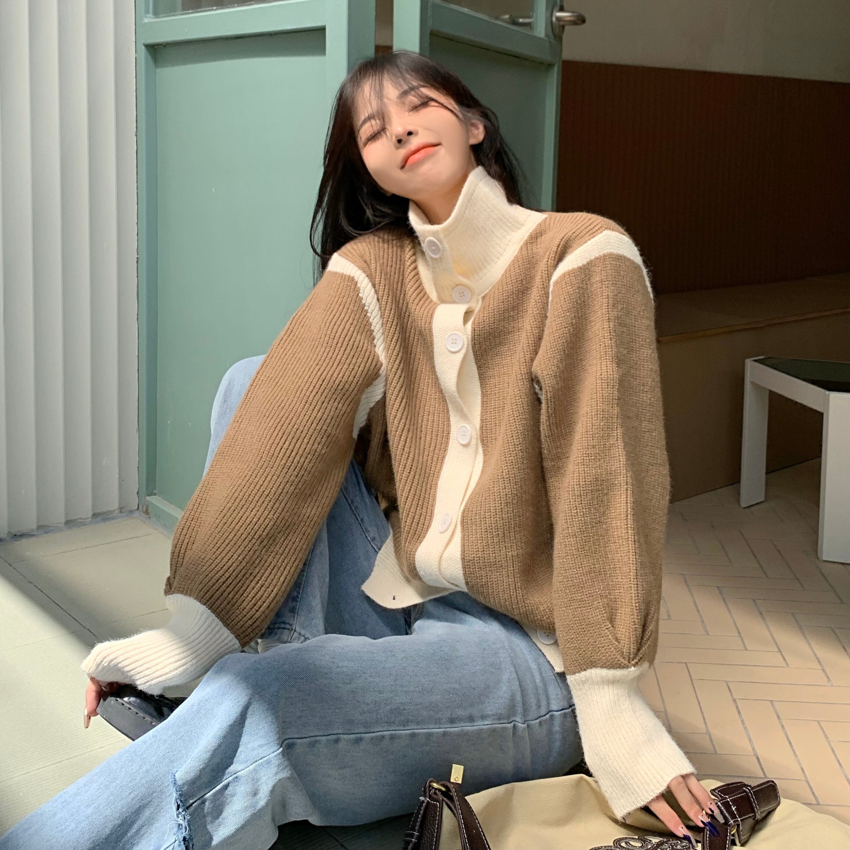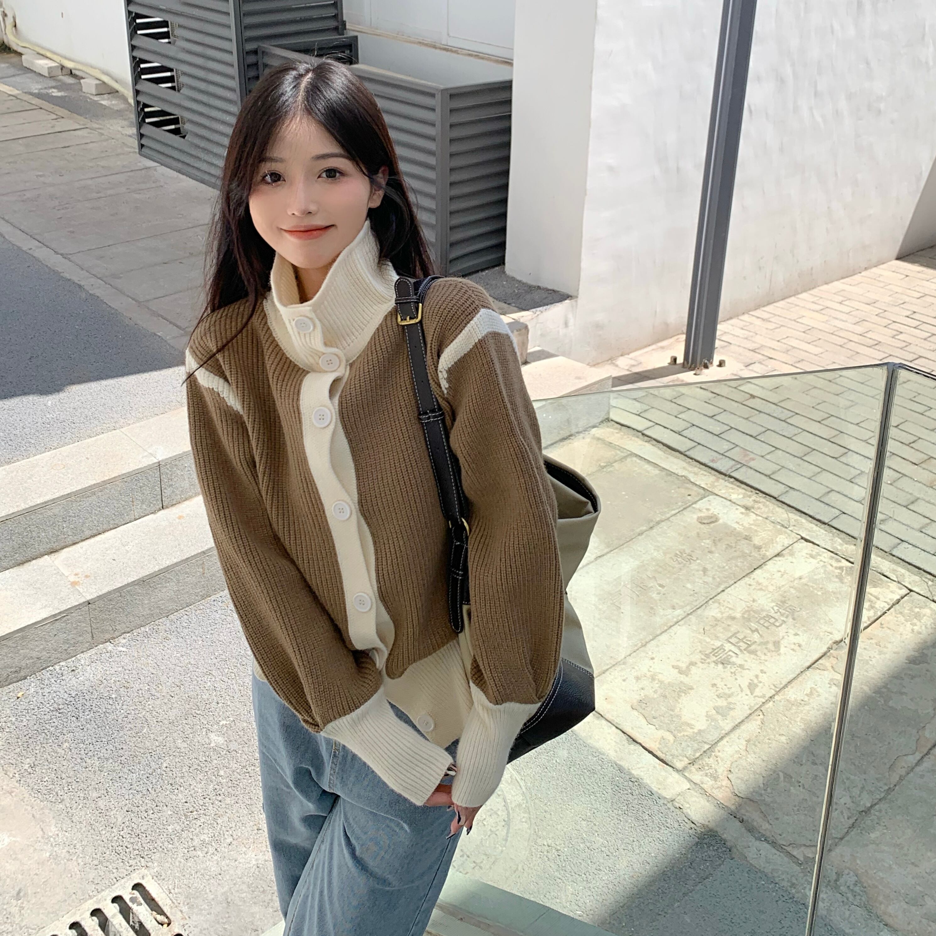 (色とサイズが選択可) トップス ニット カーディガン セーター ハイネック スタンドカラー 長袖 ランタンスリーブ ボタン シングルブレスト シンプル カジュアル こなれ感 ルーズ かわいい おしゃれ ボーイッシュ 10代 20代 30代 40代 通勤 通学 普段使い 休日 デート お出かけ 女子会 韓国系 ファッション コーデ 無地 グレー 灰色 カーキ バイカラー | Chère