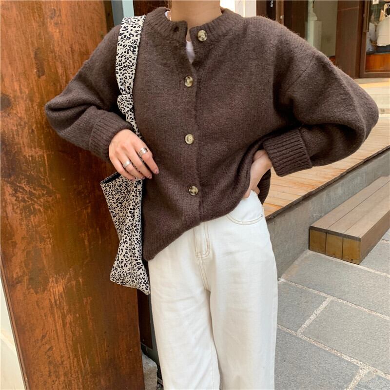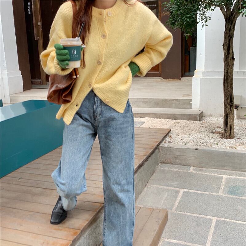 (4色選択可) トップス ニット カーディガン 長袖 ラウンドネック シングルブレスト ボタン シンプル カジュアル おしゃれ かわいい 大人可愛い こなれ感 ルーズ 10代 20代 30代 40代 通勤 普段使い 休日 お出かけ デート 女子会 着回し コーデ ファッション フリーサイズ 無地 カラバリ イエロー 黄色 パープル 紫 ブラウン 茶色 ピンク | Chère