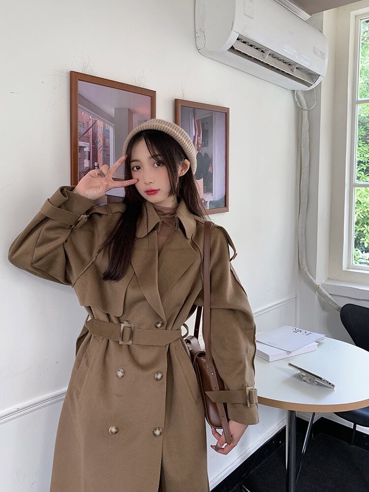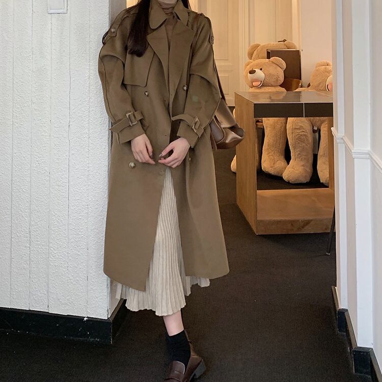 ロング丈で気になる体型もカバーでき、ウエストベルトをすることですっきりと着こなせます。