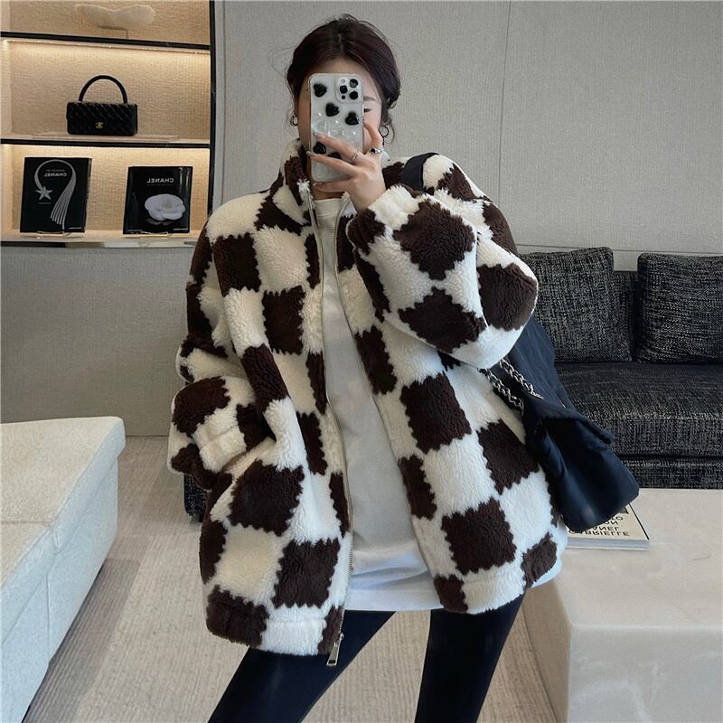チェック柄でふわふわした手触りのいい大人可愛いあったかボアジャケット。