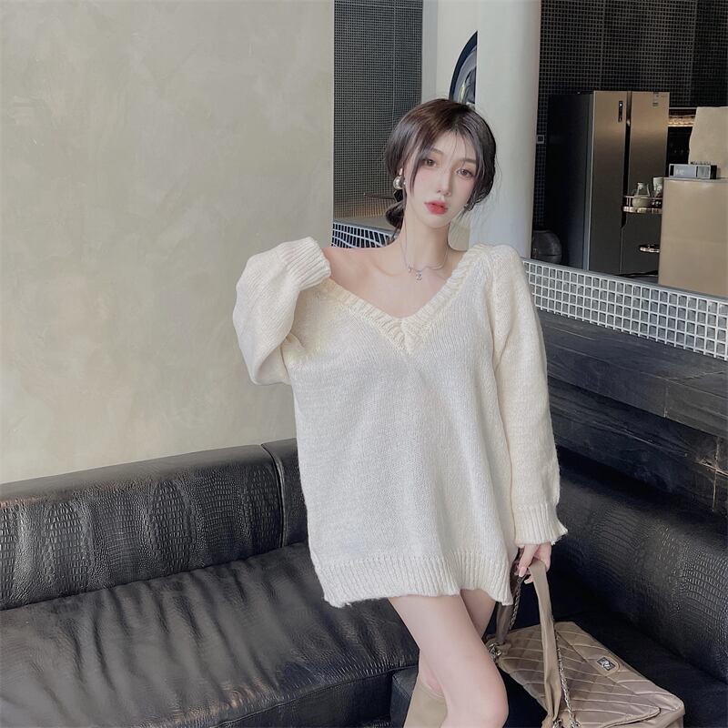 (3色選択可) セーター ニットセーター プルオーバー トップス ロング丈 チュニック Vネック 長袖 無地 ゆったり レディース 可愛い きれいめ シンプル カジュアル 大人 かわいい おしゃれ お洒落 上品 フェミニン 大人可愛い 大人女子 春 秋 冬 10代 20代 30代 40代 デート お出かけ 女子会 デイリー 普段着 ブラック 黒色 ホワイト 白色 グレー 灰色 | Chère
