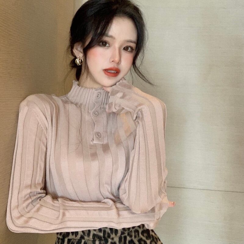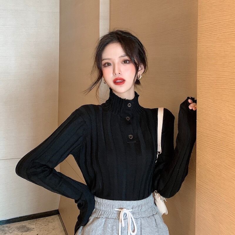 太めのリブが可愛いボタン開閉式ハイネックニットです。