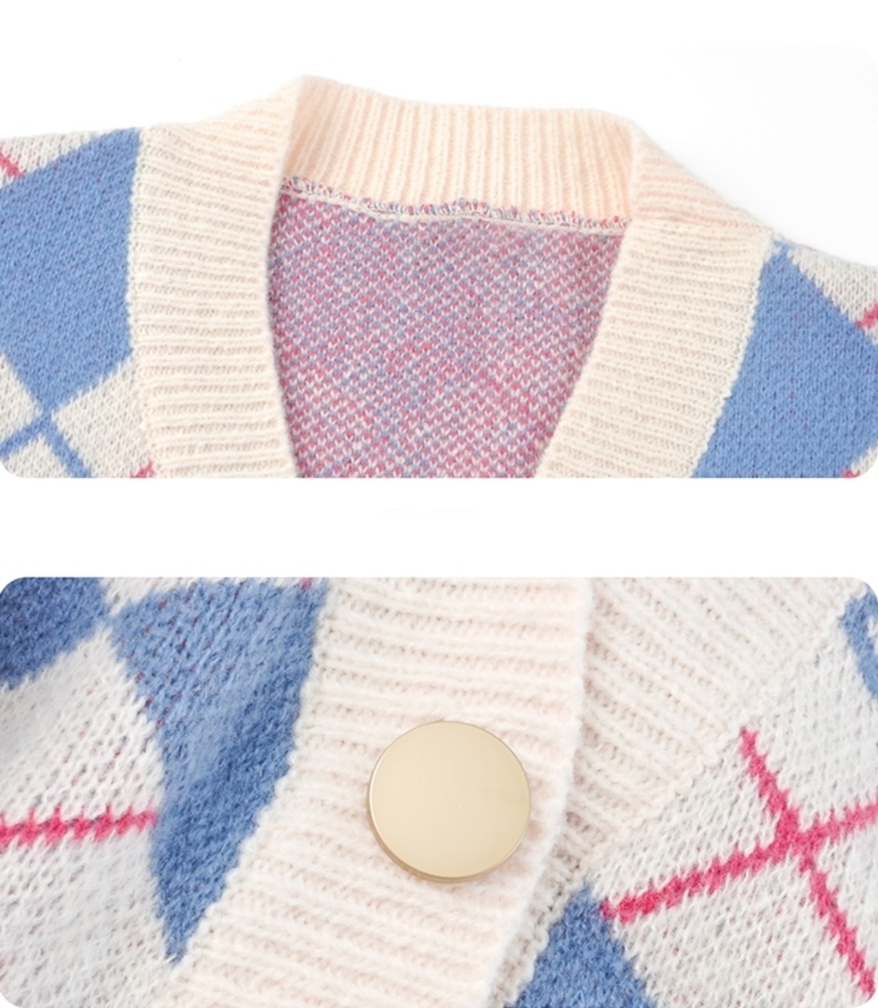 (2色選択可) カーディガン ニットカーディガン トップス 前開き 羽織り ライン Vネック アーガイル ダイヤ チェック バイカラー パステルカラー 長袖 無地 ゆったり メタルボタン レトロ レディース 可愛い きれいめ シンプル カジュアル 大人 かわいい おしゃれ お洒落 上品 フェミニン 大人可愛い 大人女子 春 秋 冬 10代 20代 30代 40代 デート お出かけ 女子会 通勤 デイリー 普段着