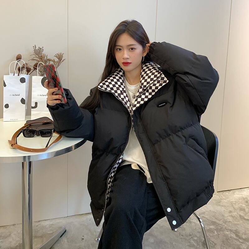 (2色選択可) アウター ダウンジャケット 切り替えデザイン ダブルフェイス もこもこ 大人可愛い こなれ感 ラフ メンズライク ボーイッシュ スポーティー クール 抜け感 フリーサイズ 大きい 大きめ ビッグサイズ ゆったり ゆる 黒 ブラック 茶色 ブラウン 無地 柄 チェック柄 秋 冬 ハロウィン クリスマス 10代 20代 30代 40代 レディース 女性用 ママ 通勤 学生 通学 デート お出かけ 公園デビュー 休日 運動 アウトドア イベント 普段使い 韓国 韓国系 オルチャン あったか 防寒