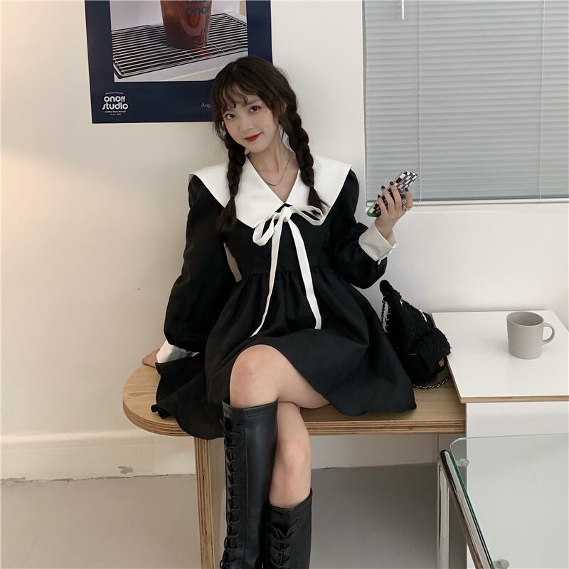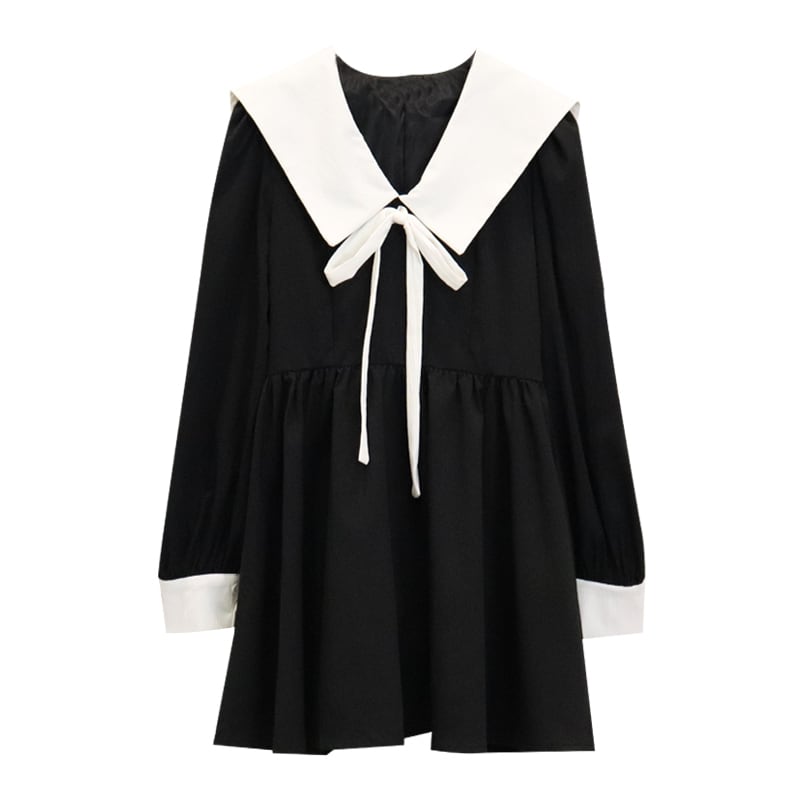 (色とサイズが選択可) ワンピース ミニ丈 ショートワンピース 長袖 ボリューム袖 萌袖 Vネック フレア リボン かわいい シンプル おしゃれ お洒落 レトロ こなれ感 ラブリー キュート ガーリー 個性的 主役級 存在感 S M L 白 ホワイト 黒 ブラック バイカラー モノトーン 無地 春 夏 秋 冬 オールシーズン 二次会 バレンタイン 10代 20代 30代 40代 レディース 学生 デート お出かけ 公園デビュー 女子会 休日 イベント 旅行 韓国 韓国系 オルチャン ファッション コーデ | Chère