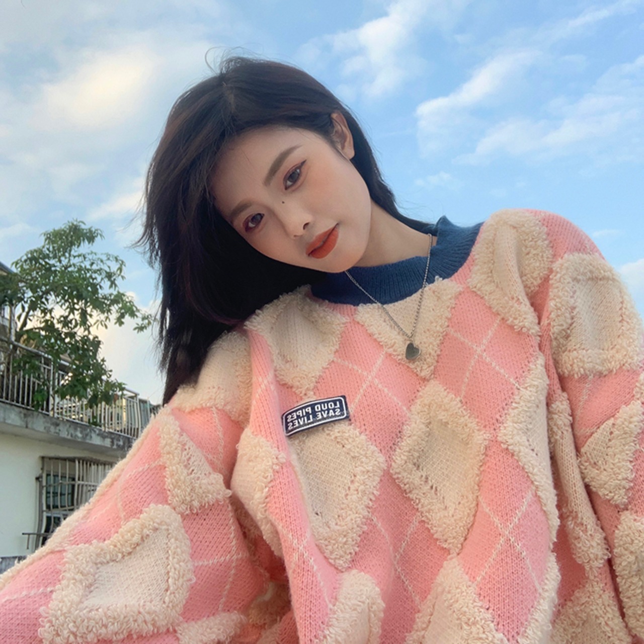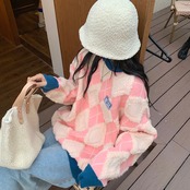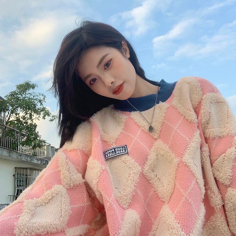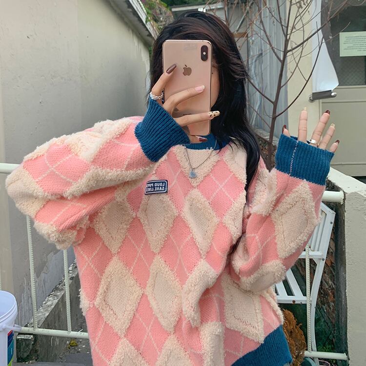 (2色選択可) トップス セーター ニット プルオーバー ラウンドネック フリーサイズ 大きめ ビッグサイズ ゆったり ゆる 赤 ピンク チェック柄 もこもこ かわいい かわいい シンプル カジュアル おしゃれ お洒落 かっこいい レトロ こなれ感 ラフ メンズライク ボーイッシュ スポーティー ラブリー キュート ルーズ 個性的 クール 主役級 10代 20代 30代 40代 レディース 通勤 学生 お出かけ 公園デビュー 女子会 お泊まり 休日 アウトドア イベント 韓国系 楽ちん 体系カバー | Chère