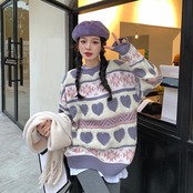 (2色選択可) トップス セーター レディース 長袖 幾何学柄 ハート 柄 普段使い 韓国 オルチャン 楽ちん あったか 暖かい モテ 体系カバー 通勤 通学 デート お出かけ 公園デビュー 女子会 お泊まり 休日 10代 20代 30代 40代 レディース ママ マタニティ かわいい 大人可愛い レトロ 大人可愛い ラフ ラブリー キュート ガーリー ルーズ 個性的 フリーサイズ 大きい 大きめ ビッグサイズ ゆったり ゆる ブルー パープル パステルカラー くすみカラー 大人カラー 春カラー 秋カラー