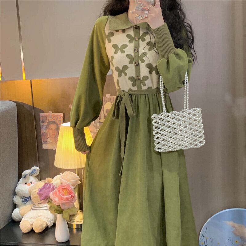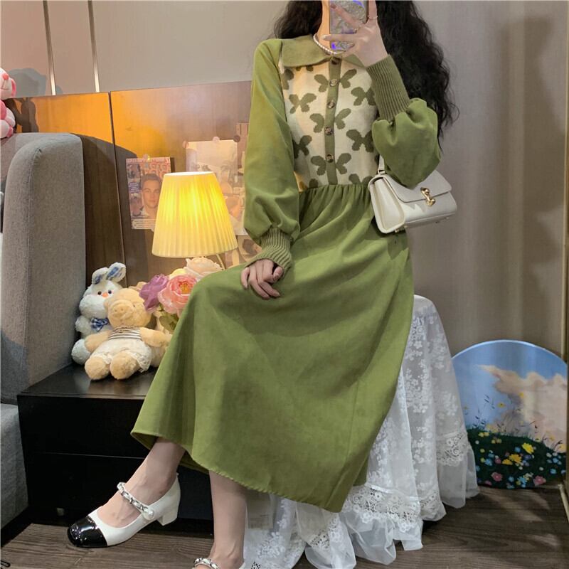 (色とサイズが選択可) ワンピース レディース ロング ロング丈 レトロ ボリューム袖 萌袖 グリーン ブラウン ブラック S M L かわいい 切り替えデザイン デート お出かけ 大人かわいい おしゃれ お洒落 フレア 細身 きれいめ シンプル 大人 上品 大人女子 こなれ感 ラブリー キュート ガーリー 主役級 普段使い スタイル 体系カバー 美脚 脚長 ギフト イベント 旅行 緑 黒 茶 ボタン 前ボタン 襟あり リボン ハイウエスト ナチュラル シンプル 秋カラー くすみカラー オフィス | Chère