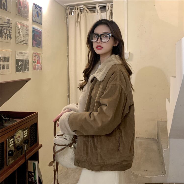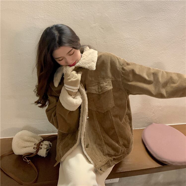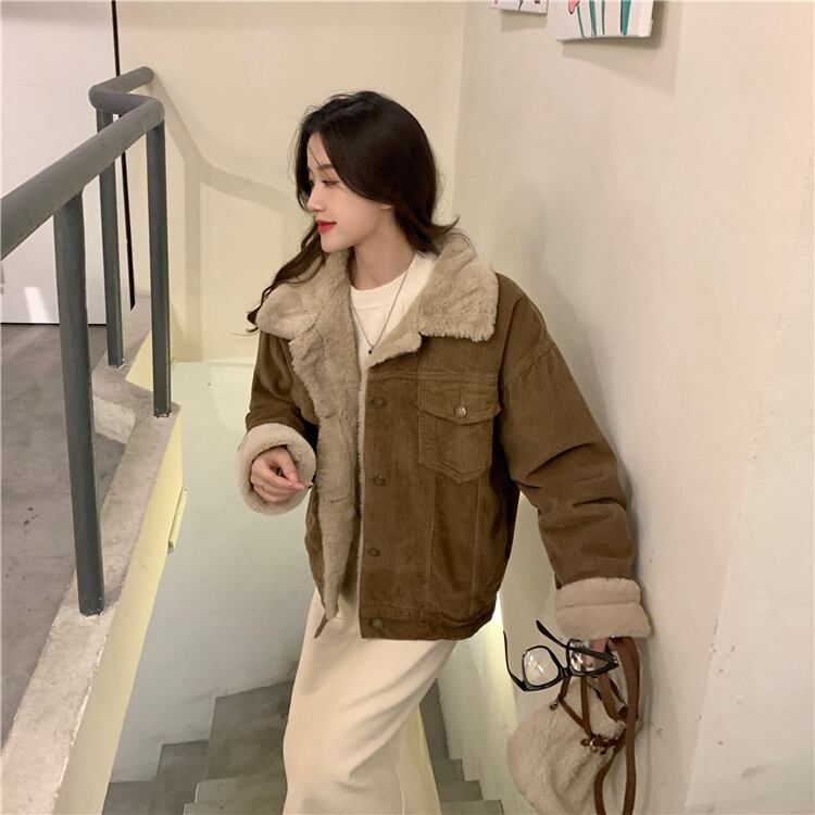 (2色選択可) アウター レディース ジャケット 上着 もこもこアウター 長袖 もこもこ 無地 モコモコ ふわふわ ポケット 前開き 異素材MIX 厚手 コーデュロイ かわいい シンプル カジュアル おしゃれ お洒落 かっこいい レトロ 大人可愛い こなれ感 ラフ メンズライク ボーイッシュ スポーティー ラブリー クール フリーサイズ ゆったり ゆる 茶色 ブラウン ベージュ くすみカラー 大人カラー 秋カラー 春 秋 冬 二次会 ハロウィン クリスマス バレンタイン 10代 20代 30代 40代 | Chère