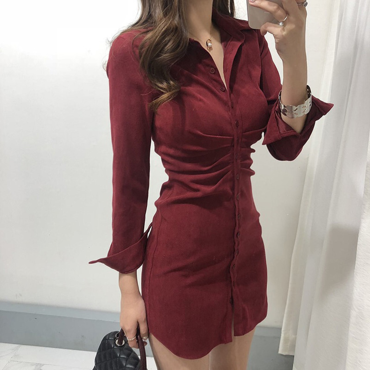 ベロア調のセクシーなシャツワンピース