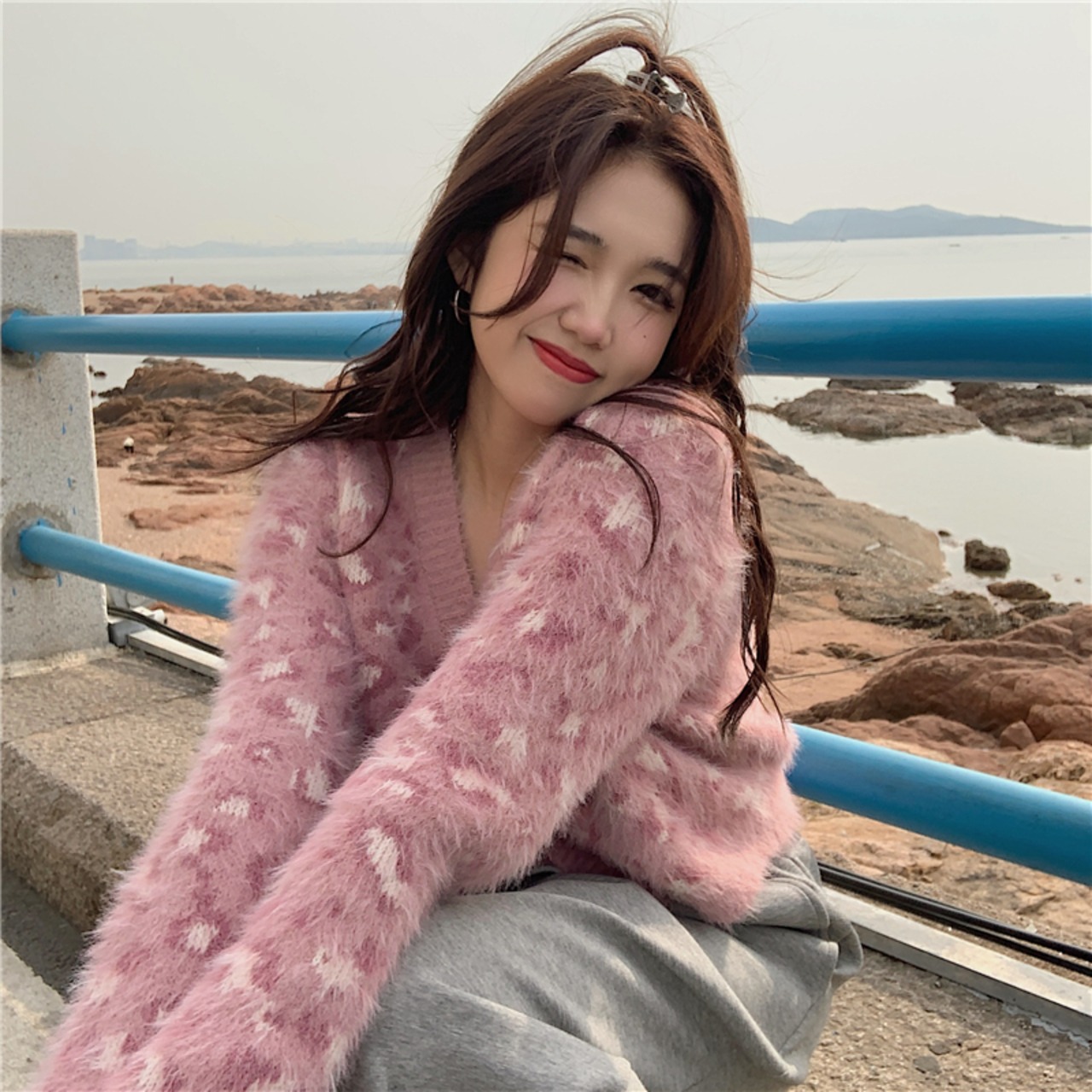ふわふわ可愛いアニマル柄が可愛いショート丈カーディガン
