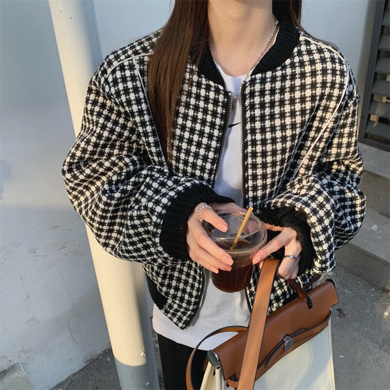 (2色選択可) アウター レディース レトロ メンズライク ボーイッシュ スポーティ 長袖 襟無し ノーカラー 黒 オレンジ ブラック ルーズ ラフ ゆったり ゆる フリーサイズ カジュアル おしゃれ お洒落 かっこいい 韓国 チェック柄 普段使い 重ね着 楽ちん あったか 暖かい 防寒 体系カバー 通勤 通学 デート お出かけ 公園デビュー 女子会 休日 アウトドア パーティー イベント 旅行 10代 20代 30代 40代 ママ マタニティ 春 秋 冬 二次会 ハロウィン クリスマス バレンタイン | Chère