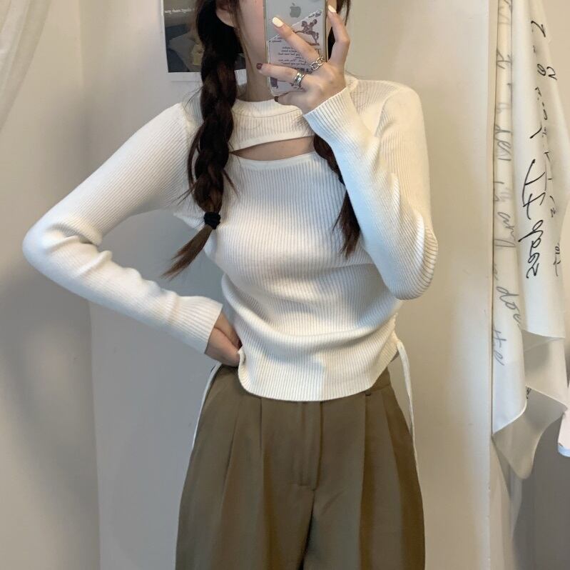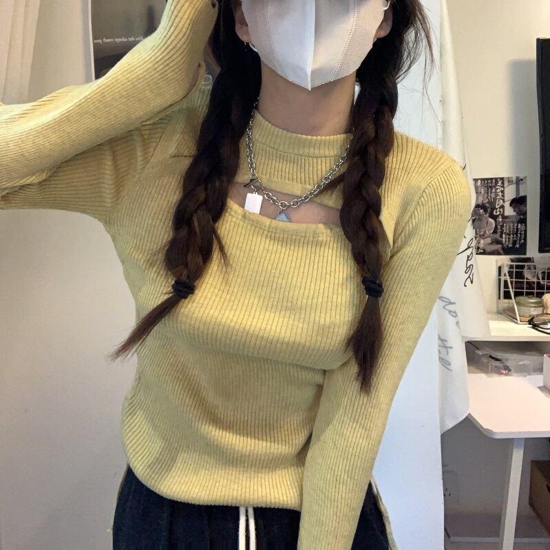 (4色選択可) トップス ニット 長袖 タイト スリム 細身 穴あき リブニット 無地 ブラック 黒 イエロー グレー ホワイト 白 ラウンドネック 袖あり かわいい 大人可愛い シンプル カジュアル 大人 おしゃれ お洒落 かっこいい 大人女子 こなれ感 ラフ スポーティー ラブリー キュート クール モード系 セクシー 抜け感 ダンス フリーサイズ 春 夏 秋 冬 オールシーズン ハロウィン クリスマス オフィス OL デート お出かけ 女子会 パーティー イベント 10代 20代 30代 40代 | Chère