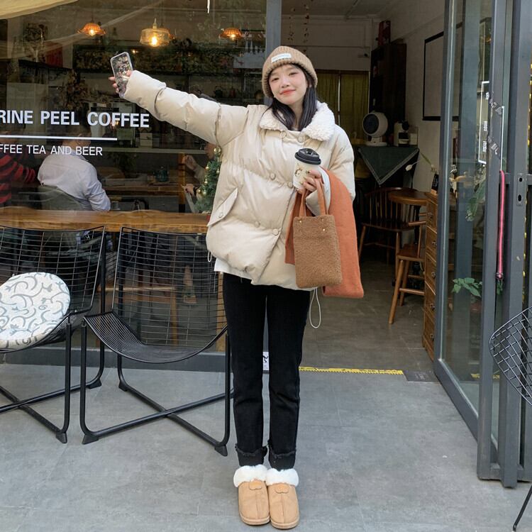 ボア襟付きのベーシックな大人可愛いあったかダウンジャケット。