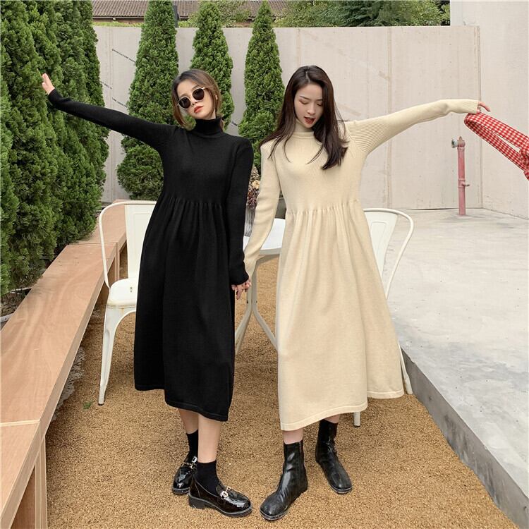 (2色選択可) ワンピース ニットワンピース Aラインワンピース フレアワンピース ロングワンピース ロング丈 ウエストギャザー ハイネック 長袖 無地 ゆったり レディース 可愛い きれいめ シンプル カジュアル 大人 かわいい おしゃれ お洒落 上品 フェミニン 大人可愛い 大人女子 春 秋 冬 10代 20代 30代 デート お出かけ 女子会 通勤 デイリー 普段着 ブラック 黒色 ベージュ | Chère