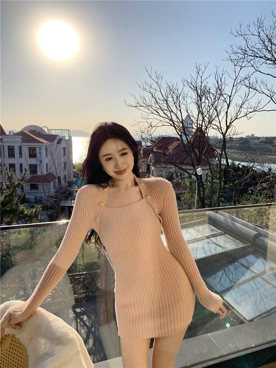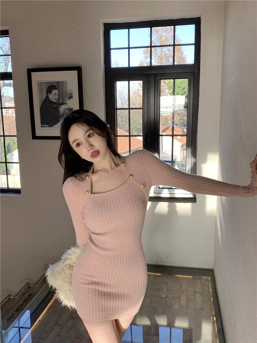 (4色選択可) ワンピース ニットワンピース ショートワンピース 長袖 リブ ニット ボタン スリム ショート丈 ミニ丈 シンプル カジュアル エレガント 上品 大人 かわいい 大人可愛い おしゃれ こなれ感 セクシー 大人女子 大人カジュアル フリーサイズ 10代 20代 30代 40代 休日 お出かけ デート 女子会 着回し 普段使い モテ コーデ スタイル 脚長 美脚 韓国系 ファッション 秋 冬 無地 ホワイト 白 ブルー 青 ブラック 黒 ピンク | Chère