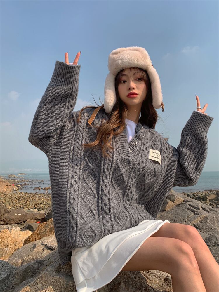 (3色選択可) トップス ニットセーター ミディアム丈 Vネック 長袖 カジュアル シンプル レトロ かわいい おしゃれ 大人可愛い お洒落 大人カジュアル こなれ感 ラフ 大人女子 大人カジュアル 抜け感 フリーサイズ 10代 20代 30代 40代 学生 OL ママ 通勤 通学 普段使い 休日 お出かけ 女子会 デート 着回し 重ね着 レイヤード モテ あったか 暖かい コーデ 韓国 スタイル 韓国系 ファッション 秋 冬 無地 アプリコット グレー 灰色 グリーン 緑