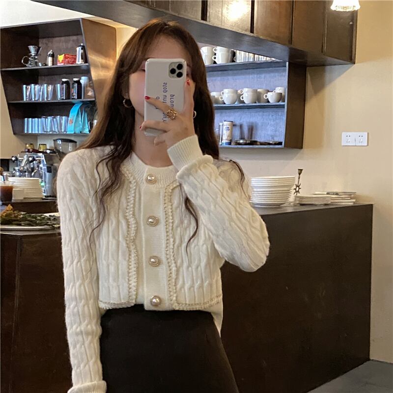 (3色選択可) カーディガン ニットカーディガン ショート丈 ケーブル 切り替え 刺繍リボン ステッチ クラシカル ラグジュアリー リュクス クルーネック パールボタン ショート丈 リブニット リブ編み 前開き 長袖 無地 ゆったり レディース 可愛い きれいめ シンプル カジュアル 大人 かわいい おしゃれ お洒落 上品 フェミニン 大人可愛い 大人女子 春 秋 冬 10代 20代 30代 デート お出かけ 女子会 通勤 デイリー 普段着 | Chère