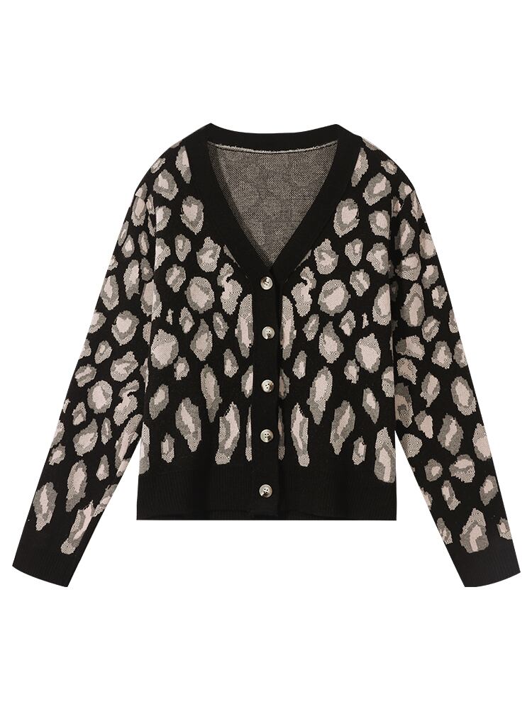 (2色選択可) トップス ニット カーディガン ショート丈 ヒョウ柄 レオパード 長袖 Vネック ボタン シングルブレスト カジュアル 個性的 レトロ おしゃれ 大人女子 大人可愛い お洒落 かわいい 大人カジュアル こなれ感 フリーサイズ 10代 20代 30代 40代 通勤 普段使い 普段着 デイリー 休日 お出かけ デート 女子会 着回し インスタ映え コーデ モテ スタイル 韓国系 ファッション 春 秋 柄 ブラック 黒 ブラウン 茶色