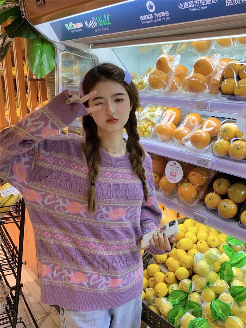 (2色選択可) トップス ニット セーター 花柄 幾何学 ローズ 薔薇 透かし編み シースルー レトロ 長袖 ラウンドネック クルーネック 厚手 ルーズ カジュアル シンプル おしゃれ かわいい 大人女子 大人カジュアル お洒落 大人可愛い こなれ感 ラフカジュアル 抜け感 フリーサイズ 10代 20代 30代 40代 学生 OL ママ 通勤 通学 普段使い 普段着 デイリー 休日 お出かけ デート 女子会 モテ コーデ 韓国系 ファッション 秋 冬 無地