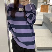デコルテのワッペンが抜け感のある定番ボーダーニットです。