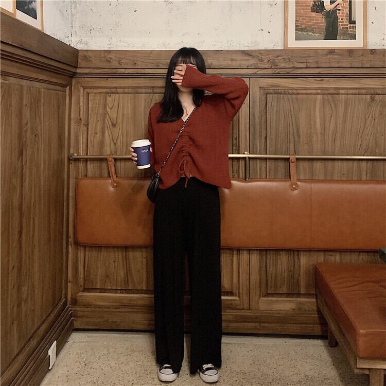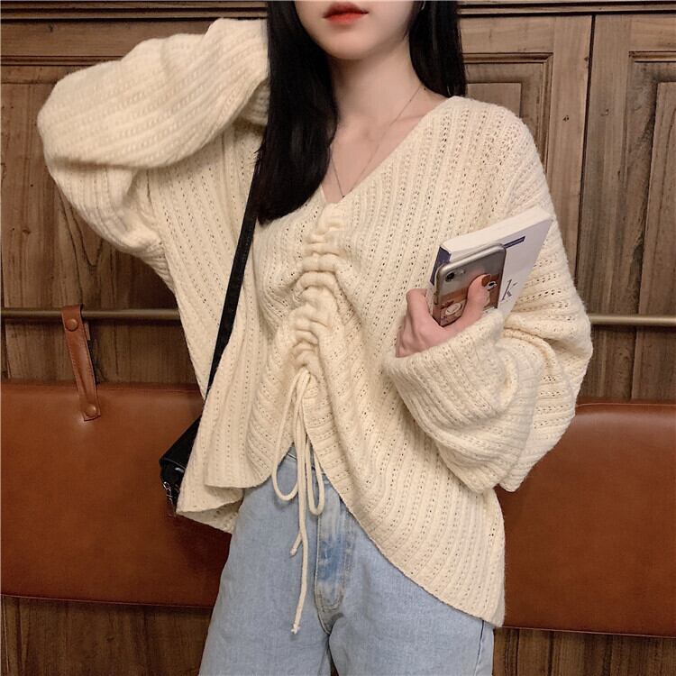 (2色選択可) トップス セーター リブニット ニットソー 透かし編み ドローストリング 調節可能 ハイゲージ プルオーバー ショート丈 シャーリング リボン Vネック クロップ丈 ドローストリング ク マルチカラ― 長袖 スリム タイト 無地 カラバリ シンプル かわいい カジュアル おしゃれ ボーイッシュ ラフ こなれ感 10代 20代 30代 40代 普段使い 休日 お出かけ デート 女子会 着回し 韓国系 ファッション コーデ あったか スタイル | Chère
