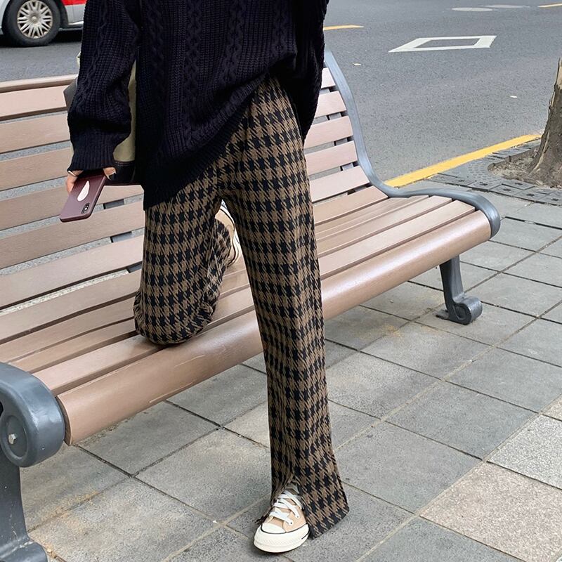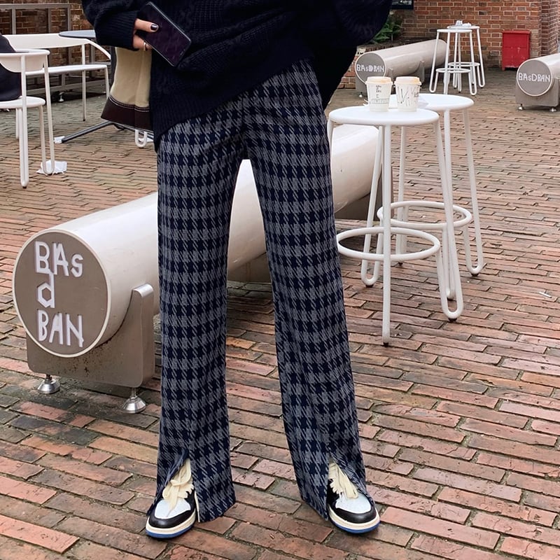 (2色選択可) パンツ ワイドパンツ グレンチェック柄 千鳥格子 ボトムス ストレートパンツ ウールパンツ ロングパンツ ロング丈 スリット ハイウエスト ウエストゴム ゆったり 美脚 レディース 可愛い きれいめ シンプル カジュアル 大人 かわいい おしゃれ お洒落 上品 フェミニン 大人可愛い 大人女子 春 秋 冬 10代 20代 30代 40代 デート お出かけ 女子会 通勤 デイリー 普段着 ブラウン グレー 灰色 | Chère