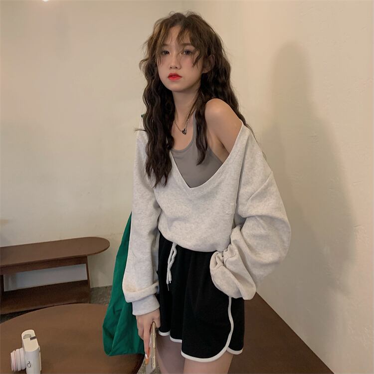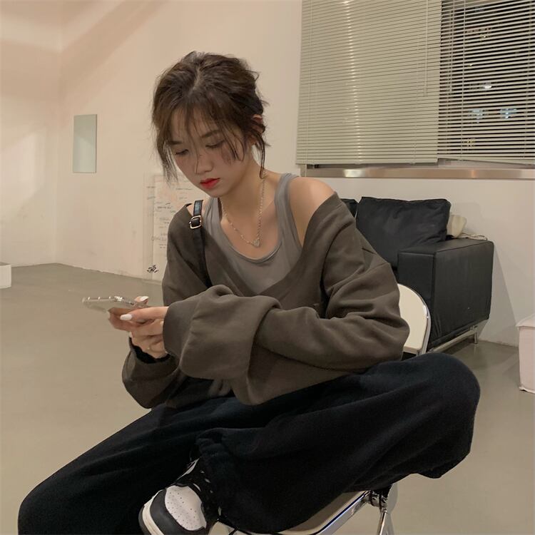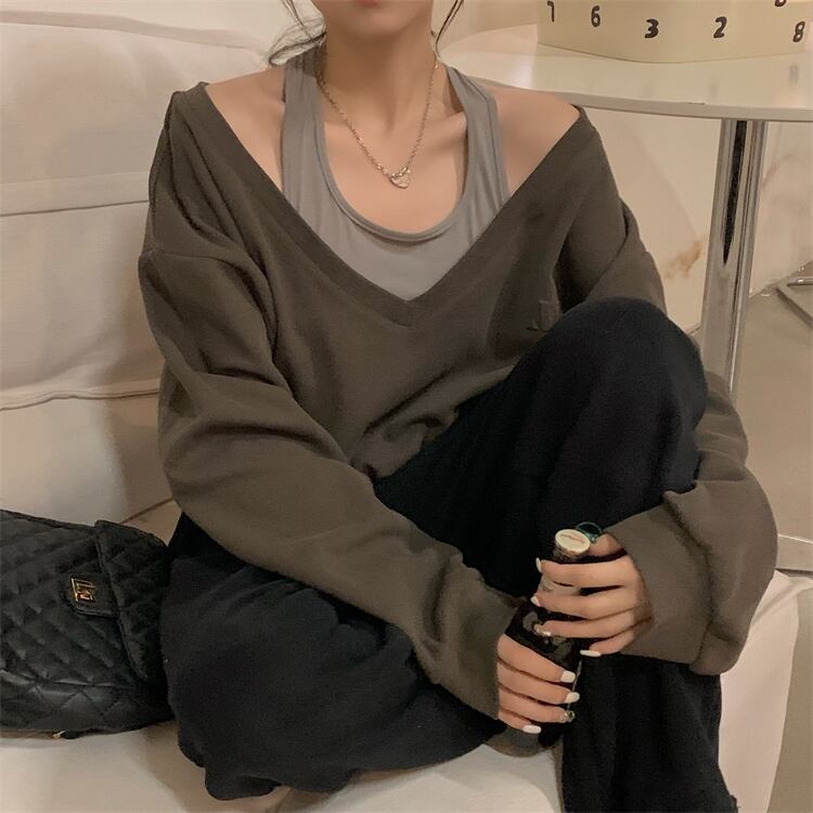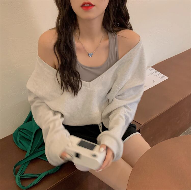 重ね着風着こなしが楽しめるオフショルダーの大人可愛いニットセーター。