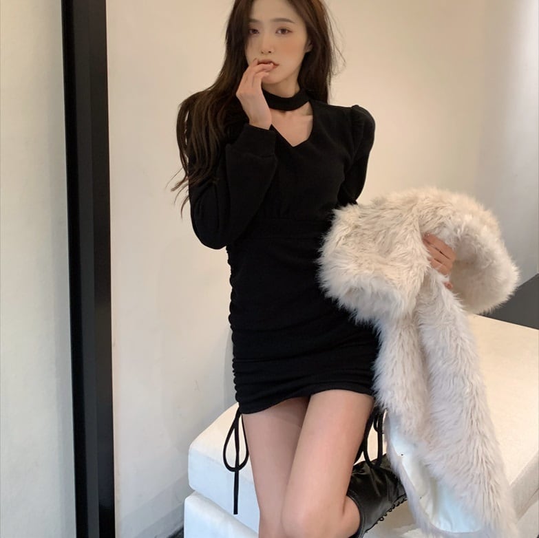 サイドをレースアップした可愛いタイト感がセクシーなワンピース