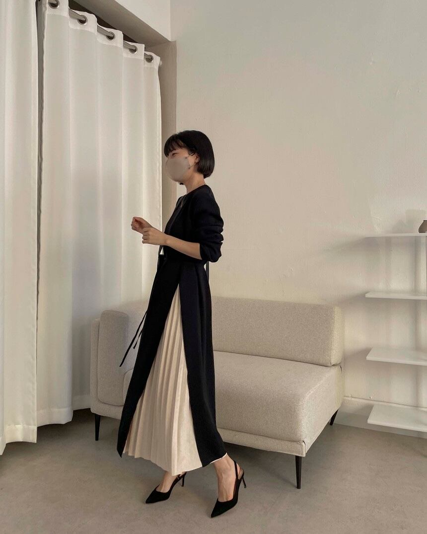 (2色選択可) ワンピース ロングワンピース ラウンドネック 長袖 ニット プリーツ ロング丈 ハイウエスト シンプル カジュアル きれいめ 大人 かわいい おしゃれ 大人可愛い 大人カジュアル こなれ感 大人女子 お洒落 フリーサイズ 10代 20代 30代 40代 お出かけ デート 女子会 普段使い モテ コーデ 体型カバー 普段着 韓国 ファッション スタイル 韓国系 無地 バイカラー ブラック 黒 カーキ | Chère