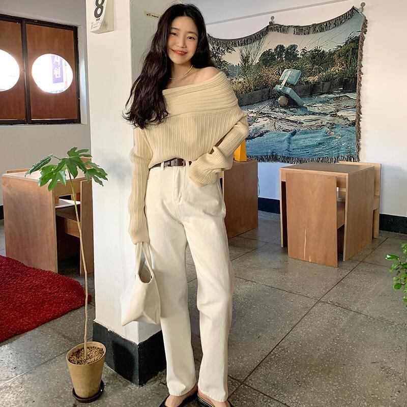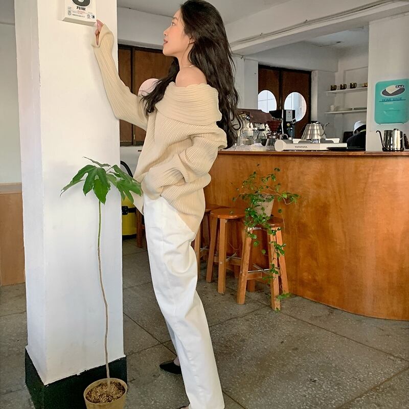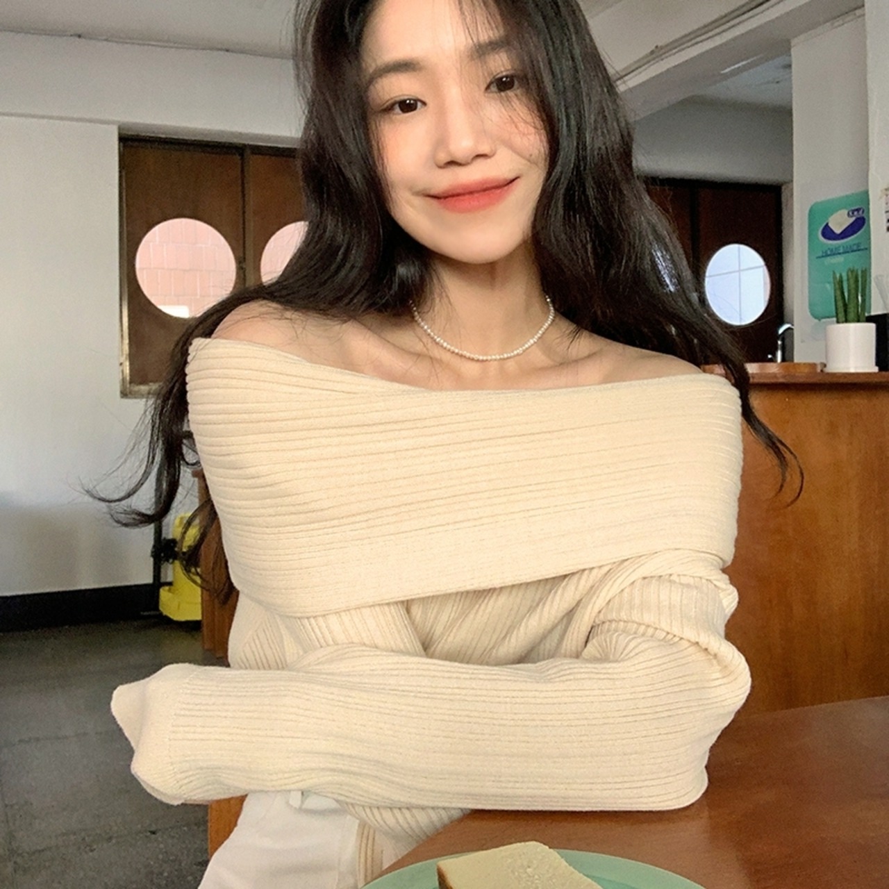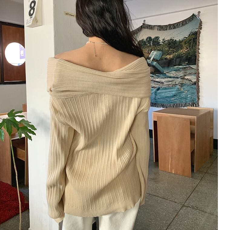 オフショルスタイルがちょっぴりセクシーなニットセーター。