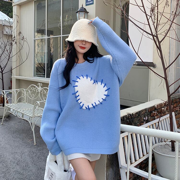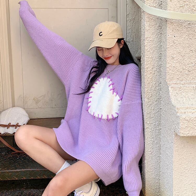 (4色選択可) トップス ニット セーター 長袖 ラウンドネック 厚手 ゆったり ゆる シンプル カジュアル ストリート系 かわいい おしゃれ 個性的 大人可愛い 大人女子 お洒落 キュート ラブリー フリーサイズ 10代 20代 30代 40代 普段使い 普段着 デイリー 学生 通学 休日 デート 女子会 お出かけ 韓国系 ファッション モテ スタイル コーデ 韓国 パープル 紫 ブルー 青 グリーン 緑 ホワイト 白 | Chère