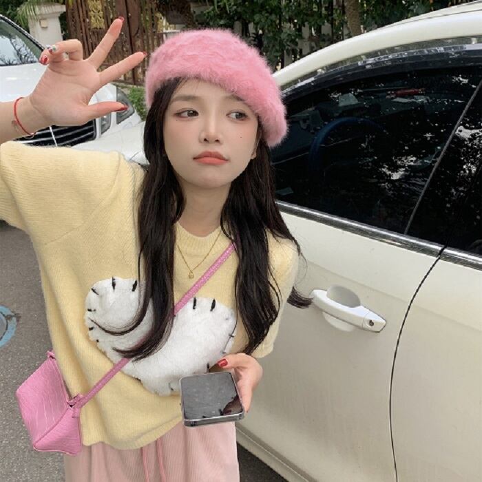 ドドンとセンターに施されたステッチの真っ白ハートが可愛いセーター