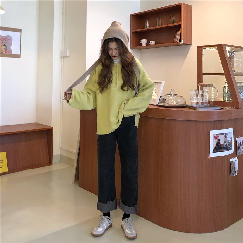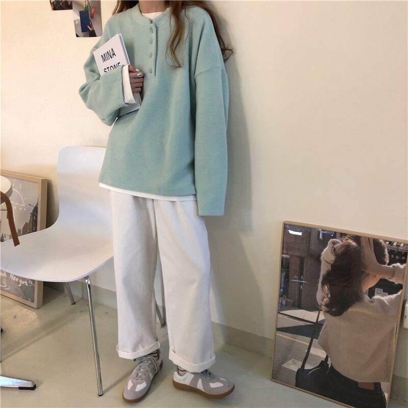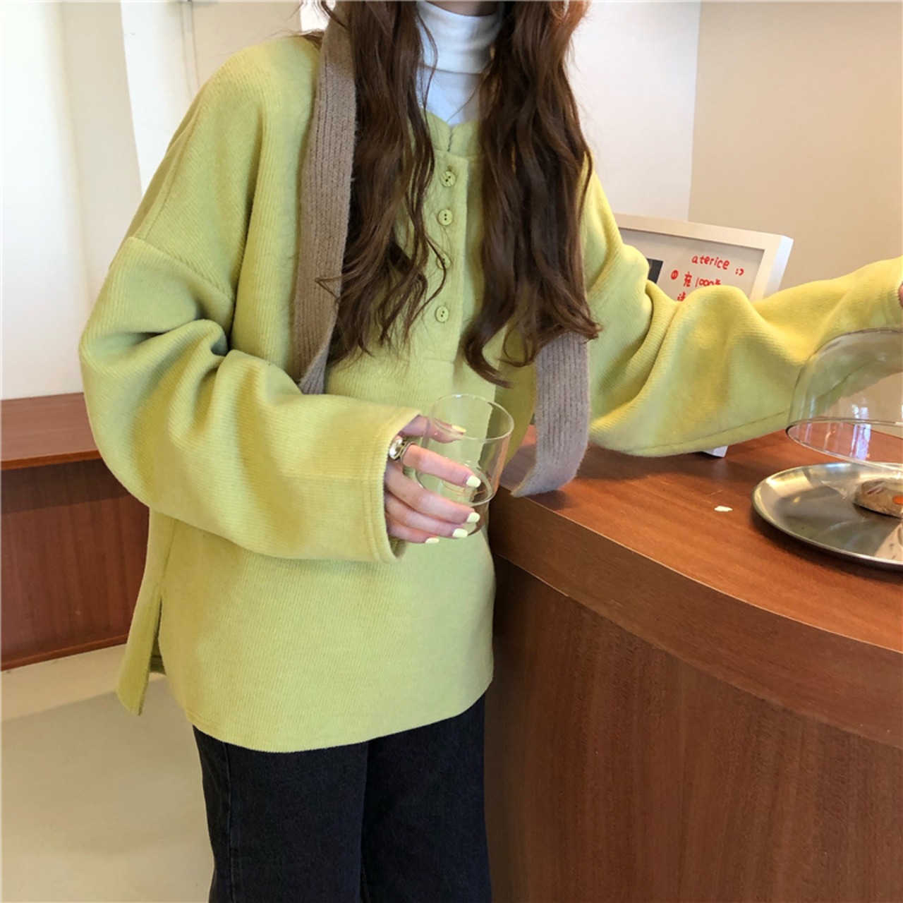 (色とサイズが選択可) トップス トレーナー 長袖 厚手 ラウンドネック ボタン ミディアム丈 スリット ルーズ シンプル カジュアル ストリート系 かわいい おしゃれ ラフ 大人可愛い 大人女子 大人カジュアル お洒落 ボーイッシュ キュート こなれ感 S M L XL 10代 20代 30代 40代 普段使い 普段着 デイリー 休日 お出かけ デート 女子会 オフ リラックス お泊まり 部屋着 着回し モテ コーデ 韓国 スタイル 韓国系 ファッション ミントグリーン 緑 マスタードイエロー 黄色 | Chère