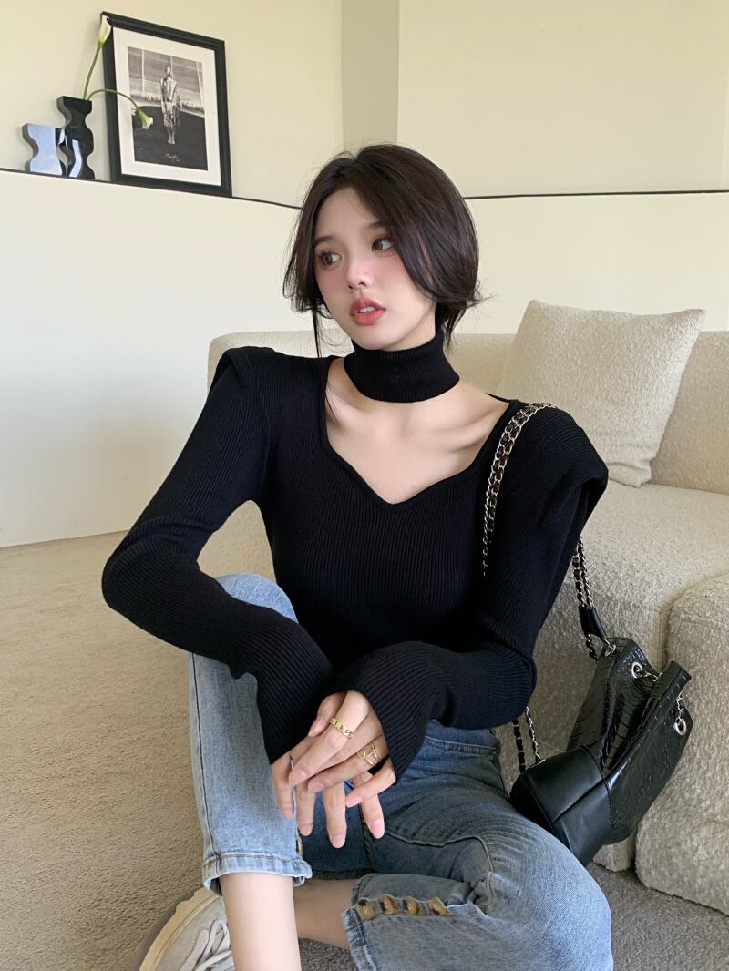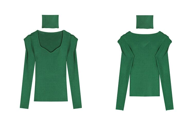 (4色選択可) セーター ニットセーター ショート丈 タイト トップス プルオーバー ネックウォーマー付き リブニット リブ編み Vネック 長袖 パワーショルダー 無地 細身 スリム レディース 可愛い きれいめ シンプル カジュアル 大人 かわいい おしゃれ お洒落 上品 フェミニン 大人可愛い 大人女子 春 秋 冬 10代 20代 30代 40代 デート お出かけ 女子会 通勤 デイリー 普段着 ホワイト ブラック グレー グリーン 緑色 灰色 黒色 白色 | Chère