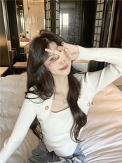 (2色選択可) セーター ニットセーター トップス プルオーバー ショート丈 肩ボタン スクエアネック 長袖 リブニット リブ編み 無地 細身 スリム レディース 可愛い きれいめ シンプル カジュアル 大人 かわいい おしゃれ お洒落 上品 フェミニン 大人可愛い 大人女子 春 秋 冬 10代 20代 30代 40代 デート お出かけ 女子会 デイリー 普段着 ホワイト ブラック 黒色 白色