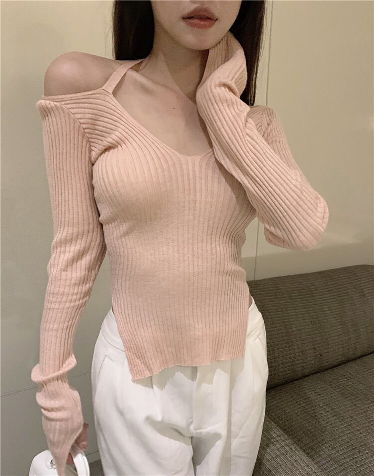 (2色選択可) セーター ニット タイト Vネック 切り替え カット バックコンシャス ブラック ピンク バックオープン サイドスリット フェイクレイヤード ショート丈 クロップ丈 トップス 羽織りデコルテ 長袖 暖かい あったか 防寒 無地 レディース 可愛い きれいめ シンプル カジュアル 大人 かわいい おしゃれ お洒落 上品 フェミニン 大人可愛い 大人女子 春 秋 冬 10代 20代 30代 40代 デート お出かけ 女子会 通勤 OL オフィス デイリー 普段着
