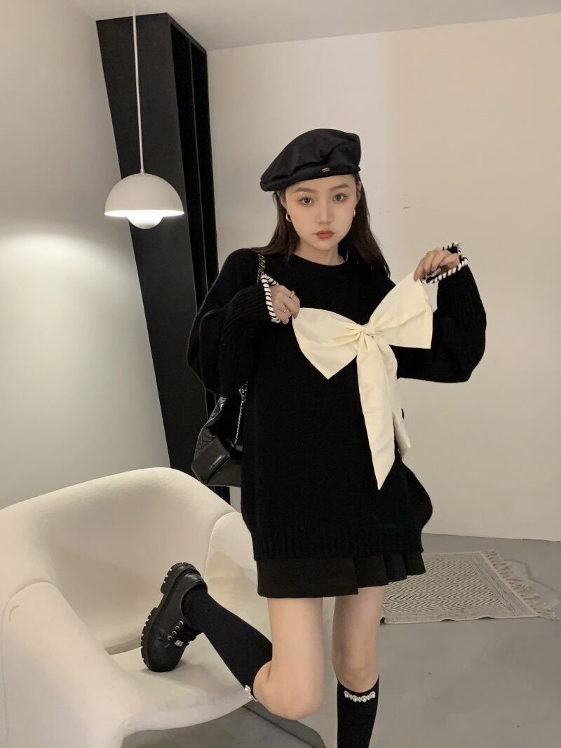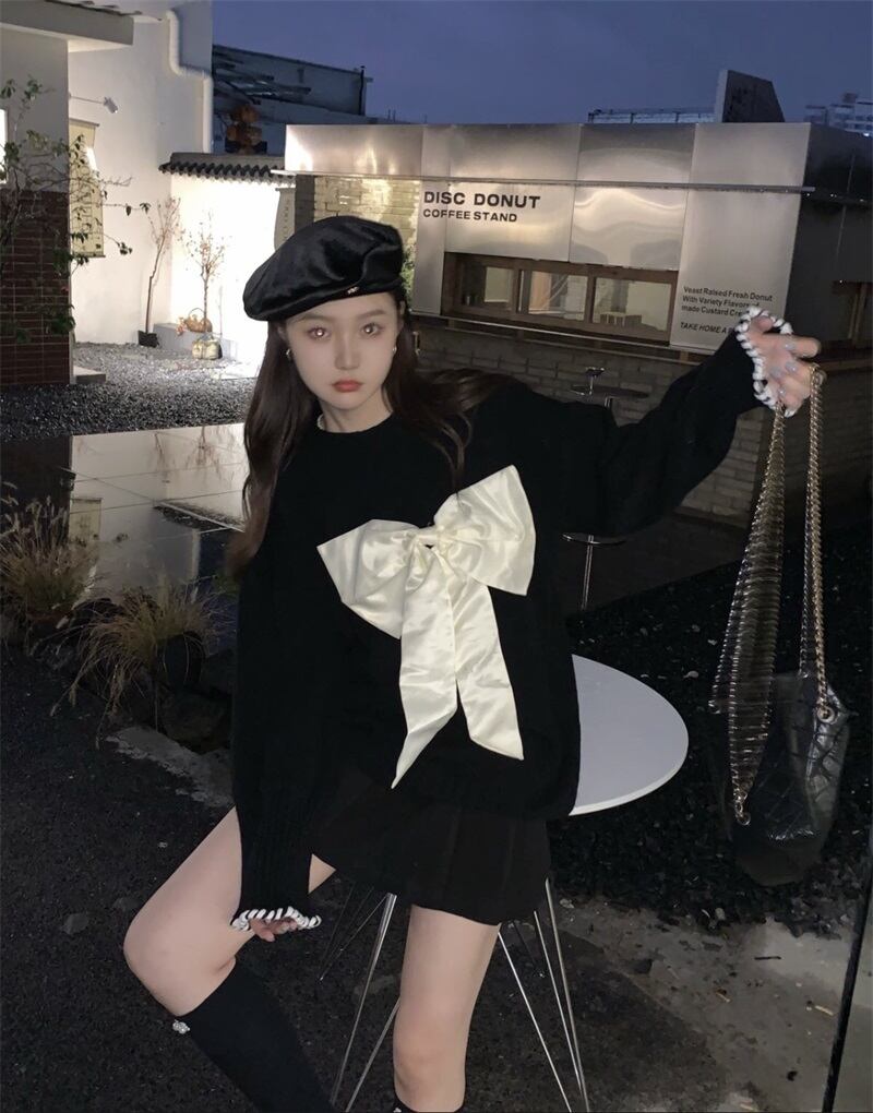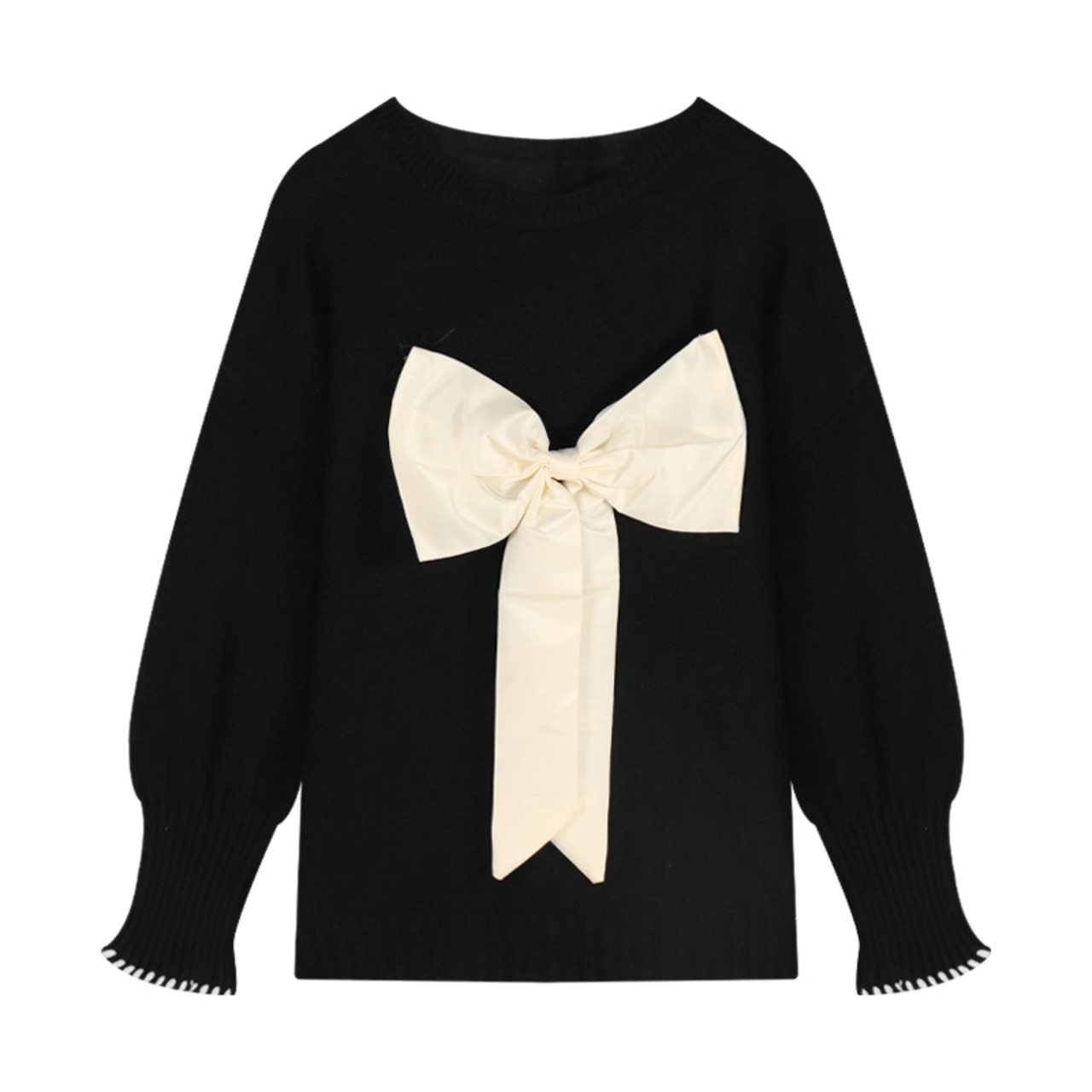 大きなリボンがモードでフェミニンなビッグシルエット仕立てのニットです。