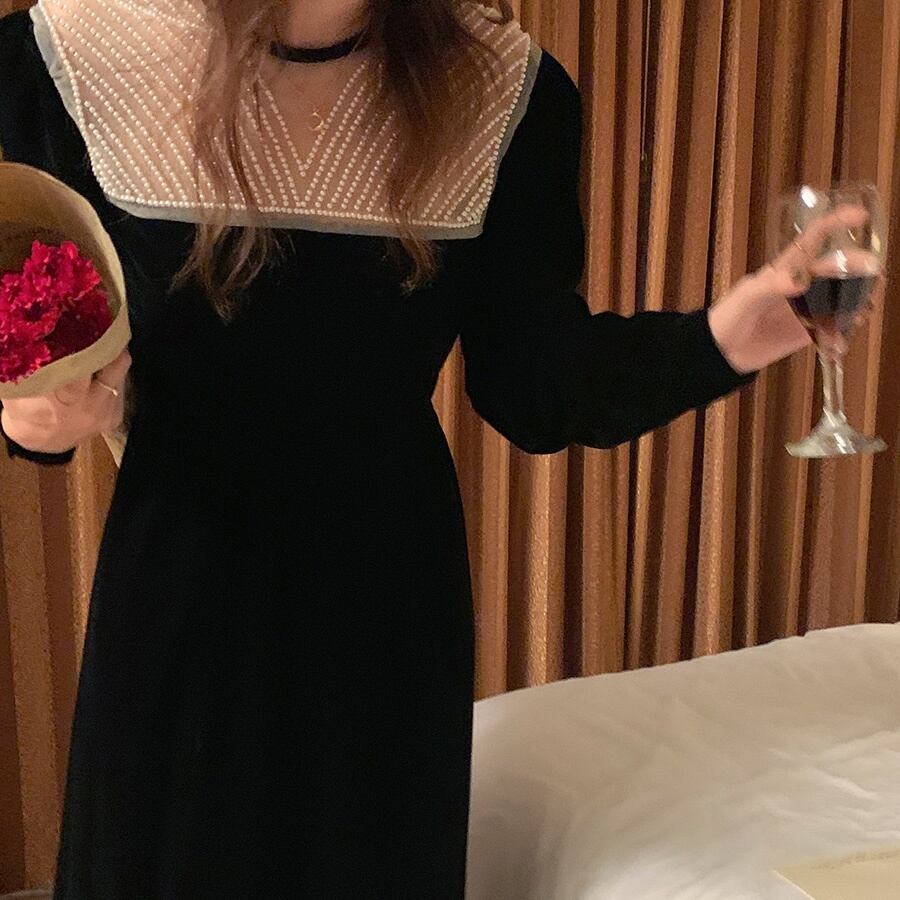 パールで装飾された襟元がセクシーかつエレガントな大人女子必見アイテム