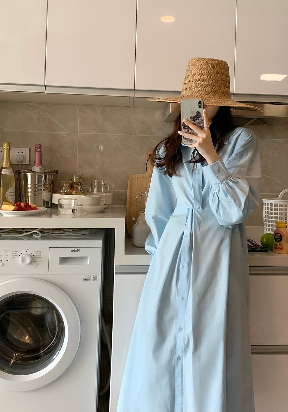 (2色選択可) ワンピース シャツワンピース レディース ロングワンピース ブルー ホワイト Aライン フレア ロング丈 モード 長袖 ウエストマーク 無地 ゆったり ビッグシルエット 可愛い きれいめ シンプル カジュアル 大人 かわいい おしゃれ お洒落 上品 エレガント フェミニン 大人可愛い 大人女子 春 秋 冬 10代 20代 30代 40代 デート お出かけ 女子会 デイリー 普段着 通勤 OL オフィス | Chère