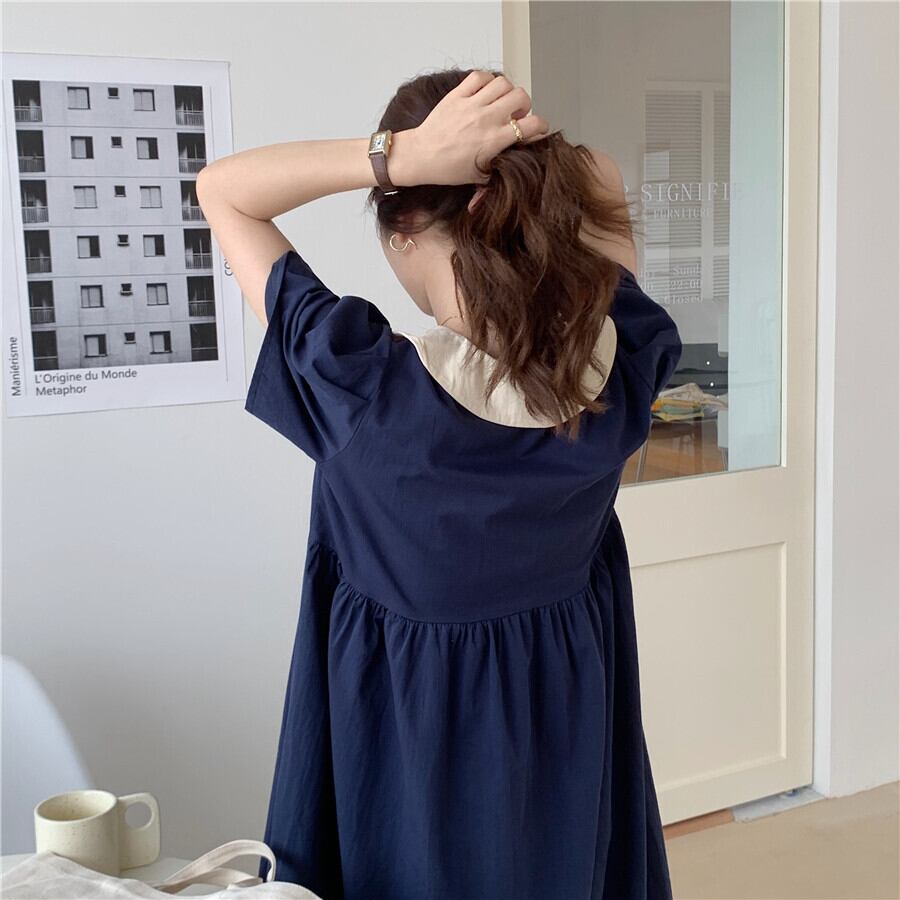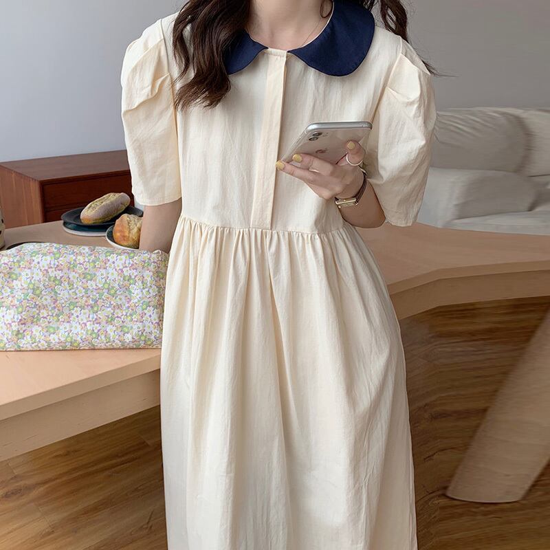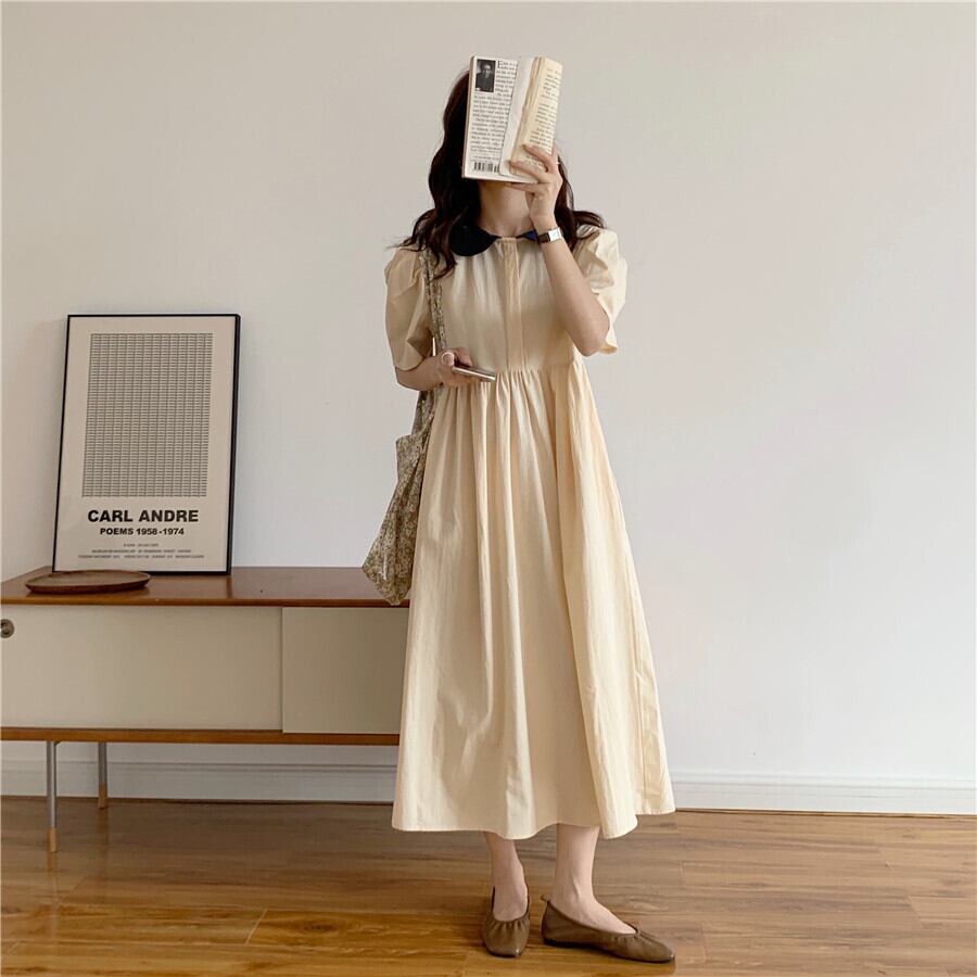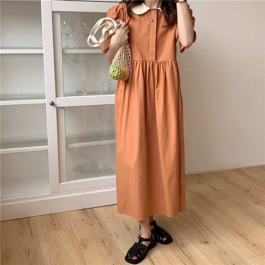 (3色選択可) ワンピース Aラインワンピース フレアワンピース ロングワンピース ロング丈 ミモレ丈 ウエストギャザー 襟付き 丸襟 半袖 ゆったり レディース 可愛い きれいめ シンプル カジュアル 大人 かわいい おしゃれ お洒落 上品 フェミニン ガーリー 大人可愛い 大人女子 春 夏 10代 20代 30代 40代 デート お出かけ 女子会 デイリー 普段着 ブルー 青色 ベージュ オレンジ | Chère