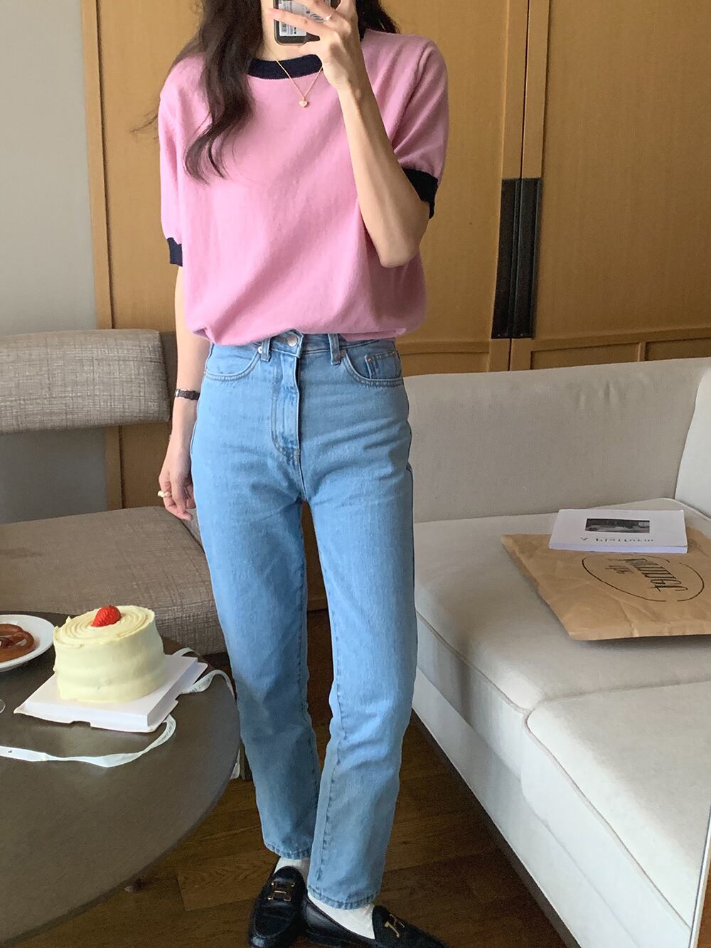 (4色選択可) トップス サマーニット ニットセーター Tシャツ プルオーバー ニットソー バイカラー ラウンドネック 半袖 パフスリーブ 無地 ゆったり レディース 可愛い きれいめ シンプル カジュアル 大人 かわいい おしゃれ お洒落 上品 フェミニン 大人可愛い 大人女子 春 夏 10代 20代 30代 40代 デート お出かけ 女子会 デイリー 普段着 ブルー 青色 グレー 灰色 グリーン 緑色 ピンク | Chère